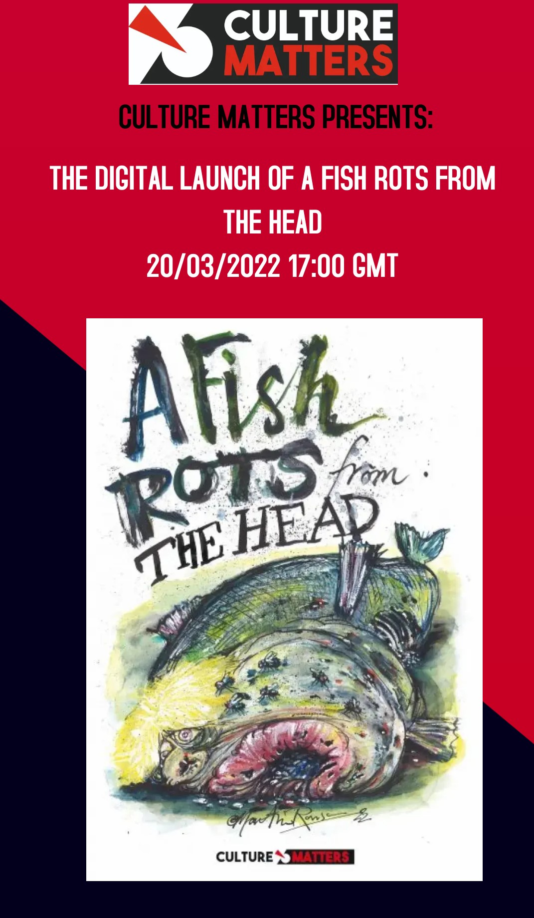 Culture Matters is pleased to announce a special event in our digital reading series: the online launch of the free flash anthology A Fish Rots From The... Continue reading