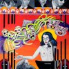 Then there are the archetypal images of men playing dominoes and darts, or leaning against a public bar with glasses of beer in front of them and whippets standing docilely behind them. In ‘Busy Bar’ the beer has the same rich hue as the wooden counter on which the glasses are congregated. As I pace from one painting to the next what strikes me is an obsession with the human form as seen from behind.