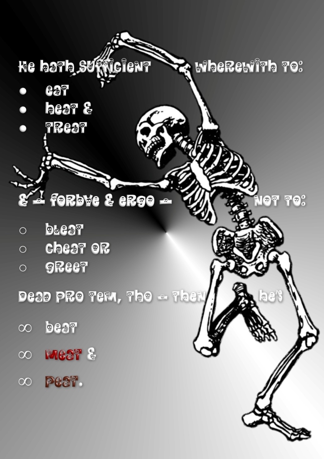 He’s long since given up writing for the (etymologically & demotically) ignorant. He – I – write(s) for a player-audience of two. If you exit before I do, there’ll be a player-audience of one. If I exit before you: “CURTAIN!”.